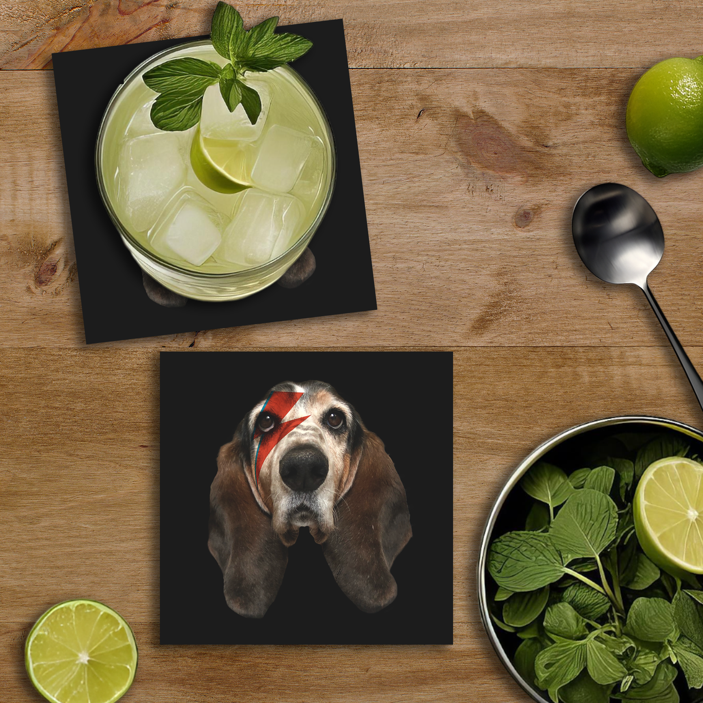 Este conjunto de portavasos es ideal para los peludos con un espíritu rockero, rindiendo homenaje a un icónico artista. ¡Una forma única y divertida de proteger tus muebles!