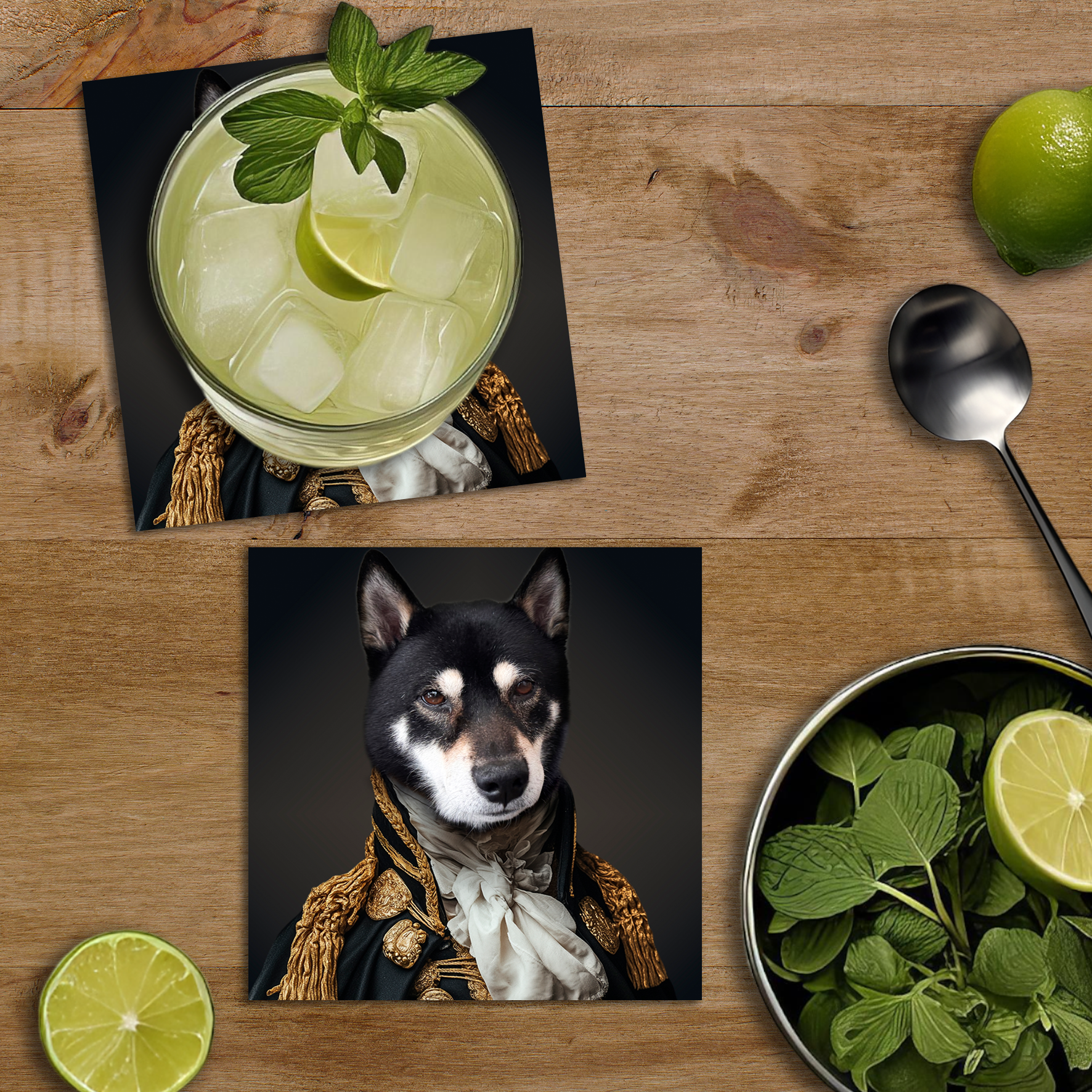 ¡Lleva a tu mascota a la realeza con nuestro set de portavasos "General"! Incluye un retrato personalizado con estilo de la realeza y es perfecto para proteger tus superficies. ¡Haz que cada café sea una experiencia real con nuestro set de portavasos "General"!